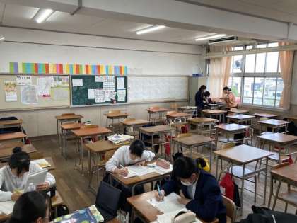 来週28日(火)、29日(水)の1学期中間テストをひかえ、3年生は放課後の自主勉強会を行っています。