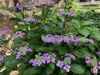 気温が上がってきて、中庭の紫陽花(アジサイ)が少しずつ花開いてきました。
