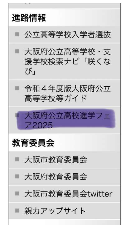 詳細は大阪府公立高校進学フェア2025と検索するか、進路情報にリンクがございますのでご確認ください。