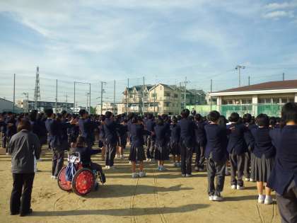 11月16日 平野区人権実践交流会が瓜破西小学校であり、45分授業になってしまったことを先にお詫びいたします。しかしながら、この交流会で本校も発表しました。本校での取り組み(田辺の模擬原爆の生徒会の参加、修学旅行での平和学習、平和登校日、夏休みの平和に関する取り組み)などです。