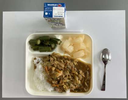 和風カレー丼、牛乳、