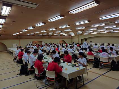 午前中の体験を終え、全員昼食場所に戻ってきました。