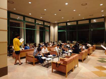 レクリエーション後、各部屋に戻り、荷物の整理と就寝準備を行っています。