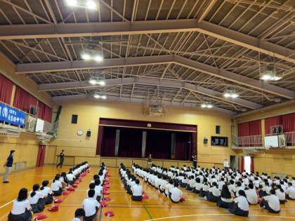 一年生では、体育館で緊急集会を行いました。
