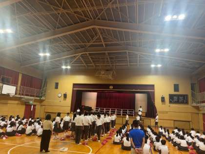 つづいて一年生もリハーサルを行っています。初めての合宿コンクールで、わからないことが多い中ですが、皆さん一生懸命に取り組んでいます!