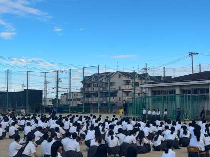学校長より気温が寒暖差が激しくなり、秋らしくなりました。体調に気をつけてましょうとのお話がありました。また明日からの合唱に向けて力も合わせて素晴らしい合唱コンクールになるように、激励をいただきました。