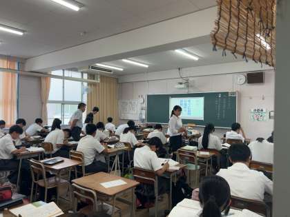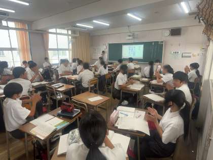 本日は教育実習生による研究授業が行われました。大学の先生はじめ多数の教員も参観にきました。メインテーマは自分の玄関扉についてでした。まずは個人で○○の扉をつけたい、その理由と事実を書き出します。その後小グループで意見交換をし、最終的に全体共有が行われました。実習生の丁寧な説明と準備に、皆さんが積極的に授業に参加していました。この学びを生かしていきましょう。生徒の皆さん、実習生の先生、お疲れ様でした!