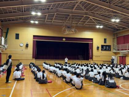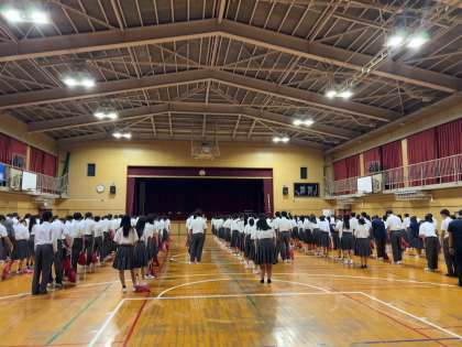 担当の先生より集会の集合状態、日々の授業などの様子をみて、『メリハリ』の必要性についてお話がありました。1つ1つの行動が信用信頼に関わることであり、社会に出たときに大切にしなければいけません。その練習の1つとしてチャイムがあります。やらないといけないことを自分たちで時計を見て気づかないといけません。早速本日より意識していきましょう!