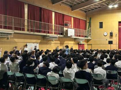 本日5.6限に芸術鑑賞としてアカペラグループ、シュガーズさんに来校いただきコンサートを行っていただきました。