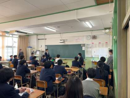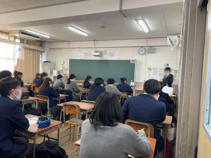 大阪緑涼高等学校の先生方に来校いただき、面接に向けての作法や心構えを教えていただいています。少し緊張した面持ちでお話を聞き、実際に練習を行われています!