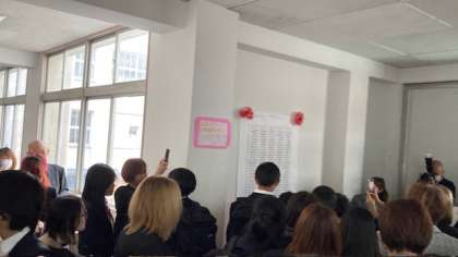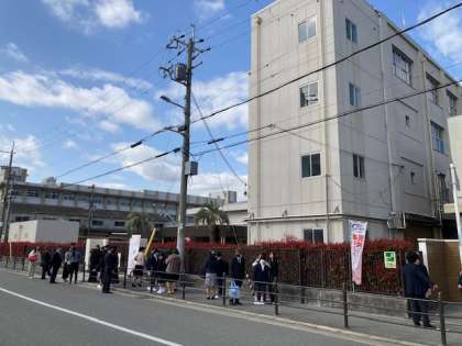 朝9時20分よりクラス発表が行われ、クラス分けの表に皆さんの視線が集中しています。