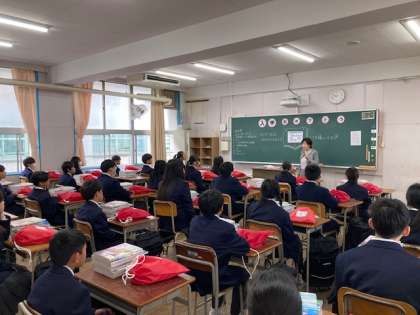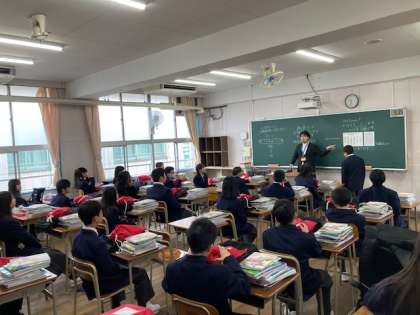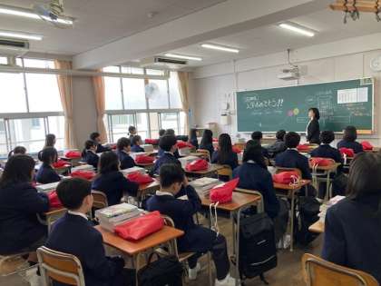各クラスに入り、担任となる先生より入学式の段取りの説明を受けています。