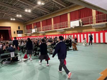1年1組から5組まで、多くの拍手に迎えられながら入場しました。