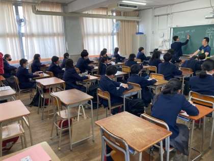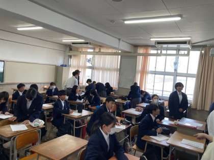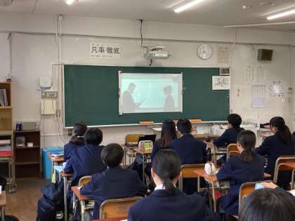 昨日までの雨の影響でグラウンド状態が悪い為、本日の全校集会と各種委員会の認証式は遠隔放映の形で各教室で行われました。