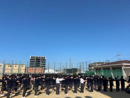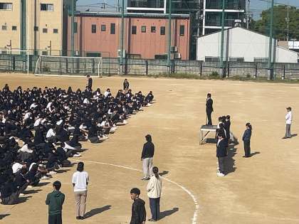 今年度はじめてのグランドでの全校集会です!