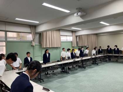 各クラスの委員長、各種委員会長、そして生徒会役員が中心となって今月の目標や活動を発表し合います。