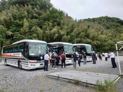写真はひこねスカイアドベンチャーに到着した4〜6組の様子です。