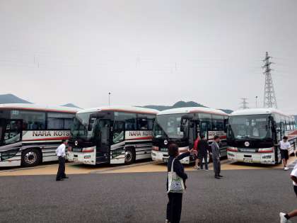 1〜3組のバスと4〜6組のバスがほぼ同時に到着するという偶然が生じました。