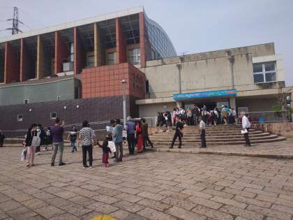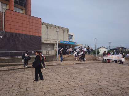 退村式を終え、民泊先のみなさんにお見送りいただき、鯖江市スポーツ交流館を出発しました。