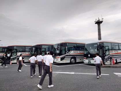 3年生を乗せたバスは休憩場所の針テラスに到着しました。