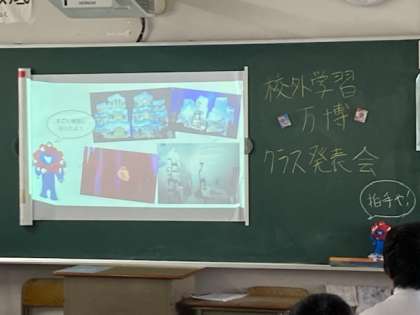 2年生は本日の5限目、校外学習で訪れた大阪・関西万博のクラス別の発表会が行われました。