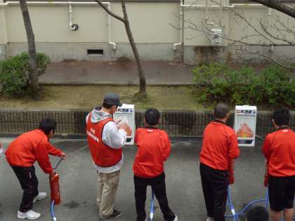 体験訓練 水消火器による初期消火
