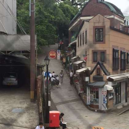 本部があるのは大浦天主堂下です。グラバー邸に行くグループが坂道を登って行きます。
