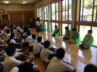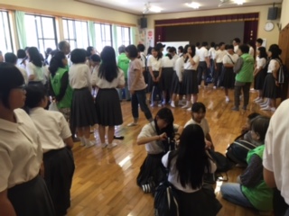 各地区で離村式を実施し、松浦文化会館に全体再集合です。