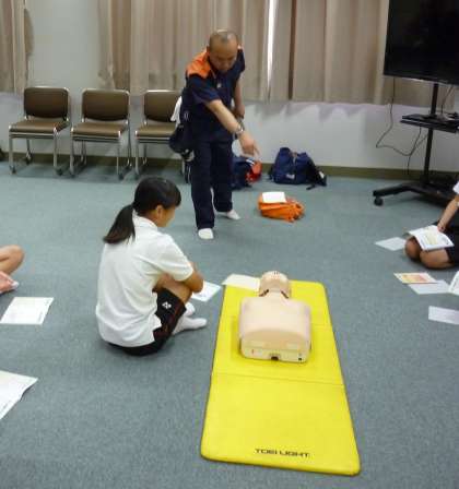 ダミー人形を使ってですが、心臓マッサージや人工呼吸などを初めての体験でした。