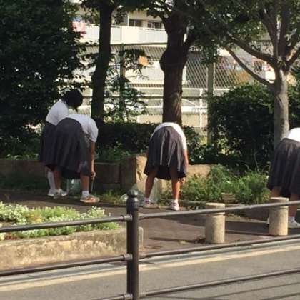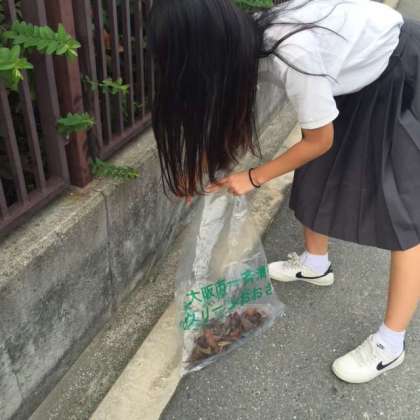 美化週間の一貫で美化委員と生徒会役員が合同で学校周辺の清掃活動を行いました。