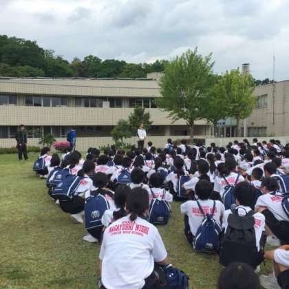 お弁当タイムが終了。あいさつと施設の説明を聞きます。