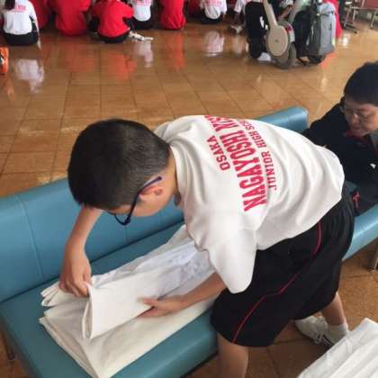 後半クラスはシーツの返却。これがなかなか難しい。折り方違うと所員の方にやり直しをさせられます。