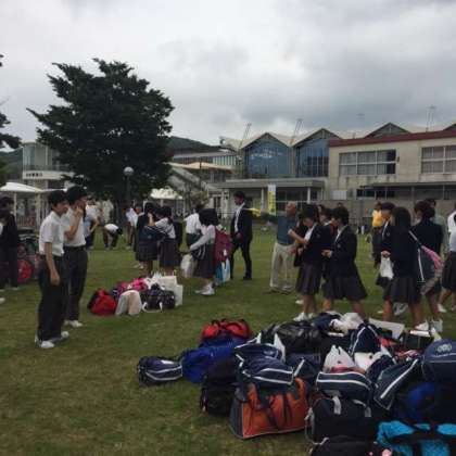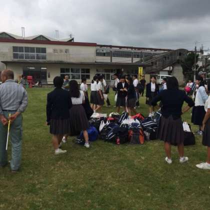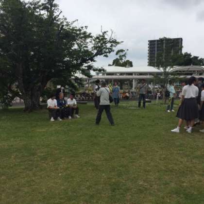 民家さんとともに、集合場所に戻り、名残惜しげな表情です。