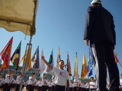 9月29日、晴天で絶好の体育大会日よりの中、生徒は元気に走り、応援しています。午前中の途中経過です。