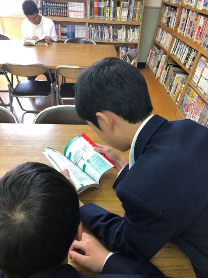 多くの生徒が貸出や読書をしに図書館に来ています。たくさん本を読んで欲しいですね。