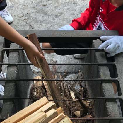 薪係が準備。ここでも、女子が優勢で男子が叱られています。