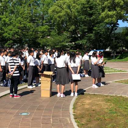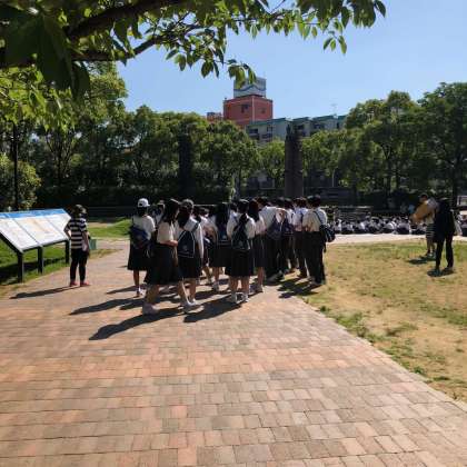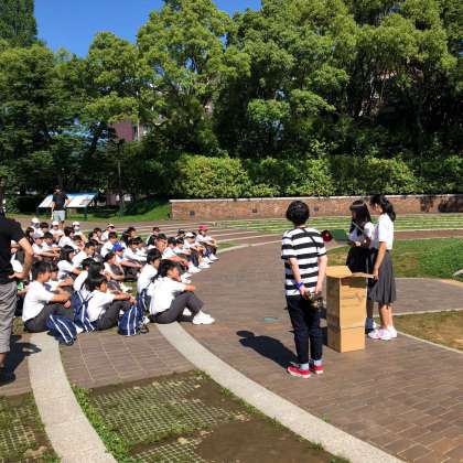 爆心地公園に移動して、平和祈念のセレモニーを行いました。