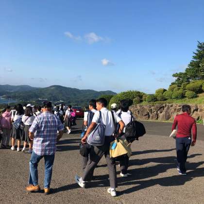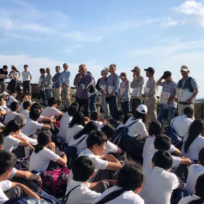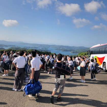 1組と2組は鹿町小佐々地区に入りました。天気が良かったので、九十九島が一望できる、長串山公園で入村式を行いました。