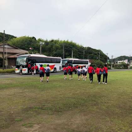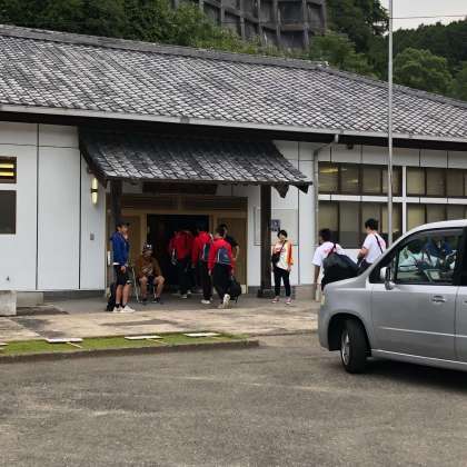 民泊体験から集合場所の公民館に荷物を置き、注意事項を聞いてそれぞれの活動場所に別れます。