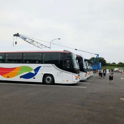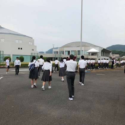 それぞれの地区から松浦文化会館に全号車が集まり、これから博多駅に向かいます。