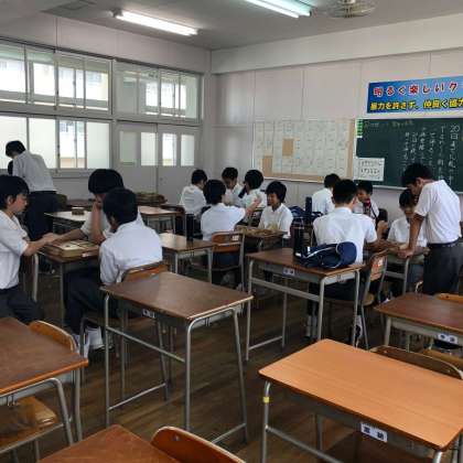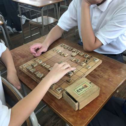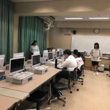 将棋部の練習風景。パソコンに向かっているのはガーデニング部です。文化発表会の準備に汗を流しています。