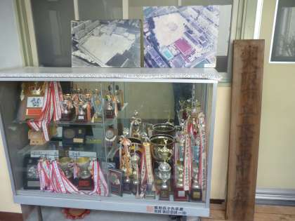 また校長室には、当時の写真パネルが掲示されています。創立10周年、30周年当時の航空写真です。当時の校舎周りの変化が感じられ、とても興味深いです。