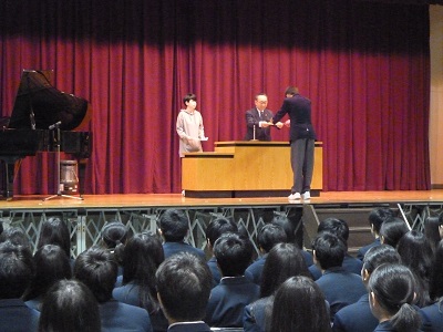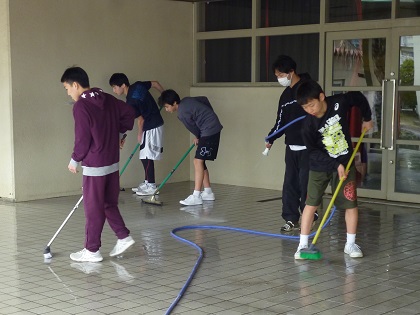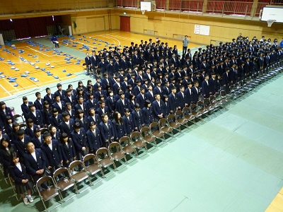 受験が終わった3年生のみなさんは、連日式の練習を行っています。卒業する3年生のために、今日は在校生で大掃除を行い、会場の準備を行いました。