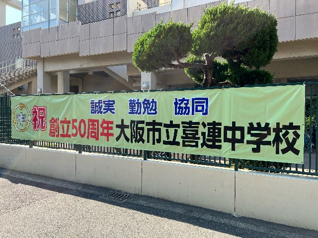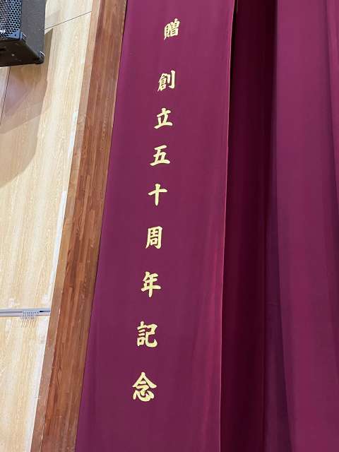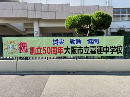 創立50周年記念の横断幕が掲げられました