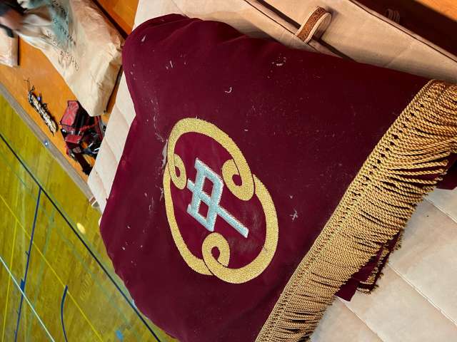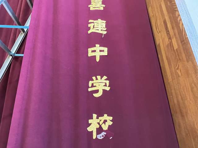 新しく校名の刺繍された源氏幕 |