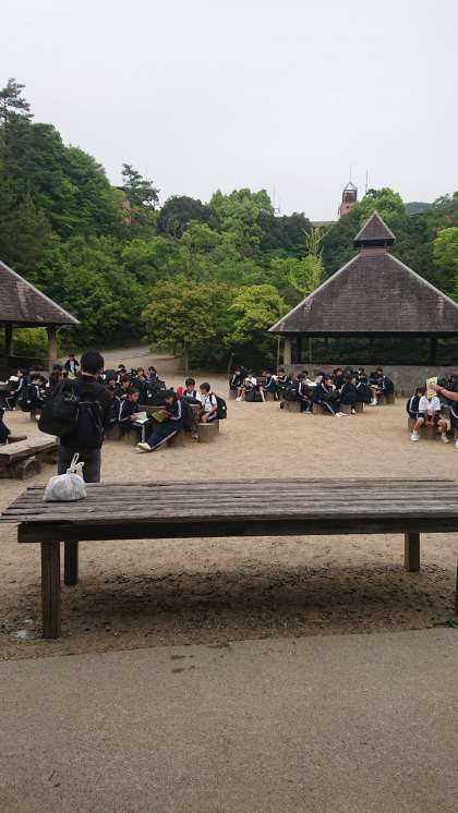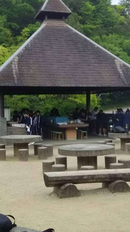 少し雨が降ってきましたが、各班で協力しながら元気に取り組んでいます!