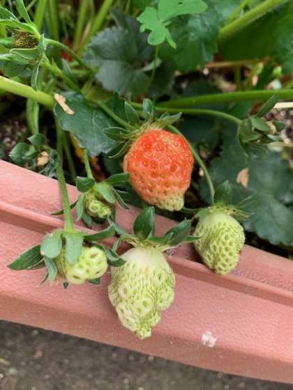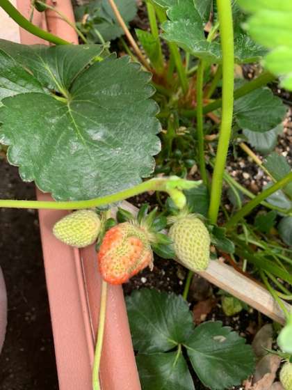 正門付近の苺の色も、鮮やかな赤にかわろうとしています。