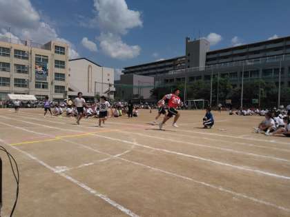 体育大会競技が予定通り行われています。