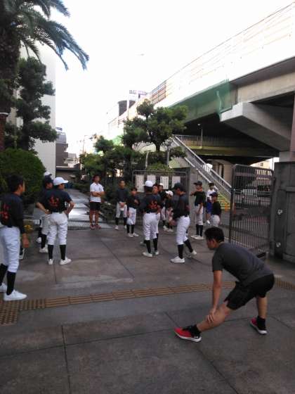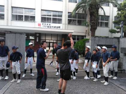 野球部では、中学時代も野球をしていた実習生が生徒と同じ練習に取り組んでいます。
