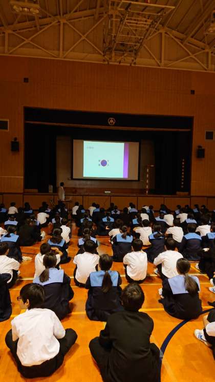 1年生は、1限目に『歯と口の健康教室』を体育館にて行いました。